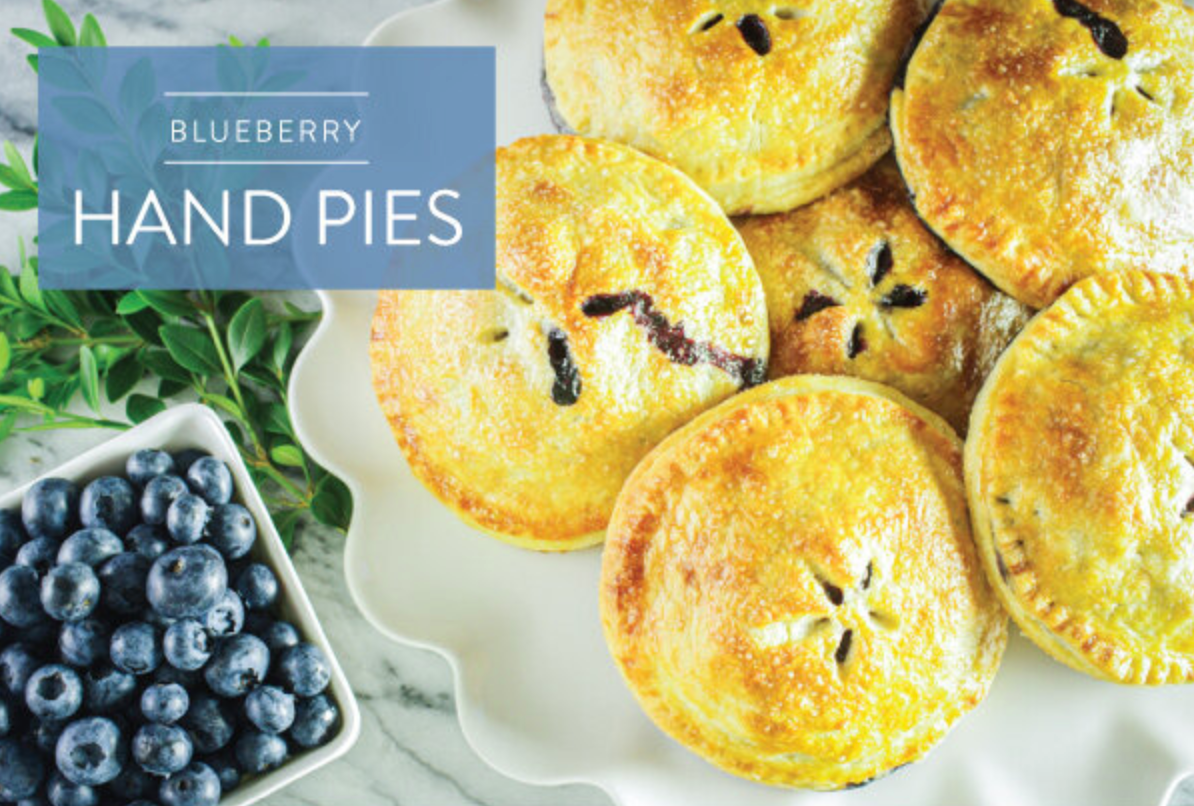 SUMMER BLUEBERRIES burst with a flavor that only happens when truly in season. One of our favorite ways to celebrate these little nutritional powerhouses is to place them in hand pies. The berries’ diminutive size fit neatly into petite packets, which highlight the rich cream cheese-based crust — a truly mouth-watering match!